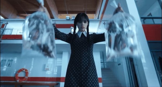 最明显的是亚当斯家族的少女星期三(珍娜·奥尔特加 饰),萝莉外表,却有着把蝎子当宠物的喜好,天生对血腥、刺激、危险的事情充满兴趣。