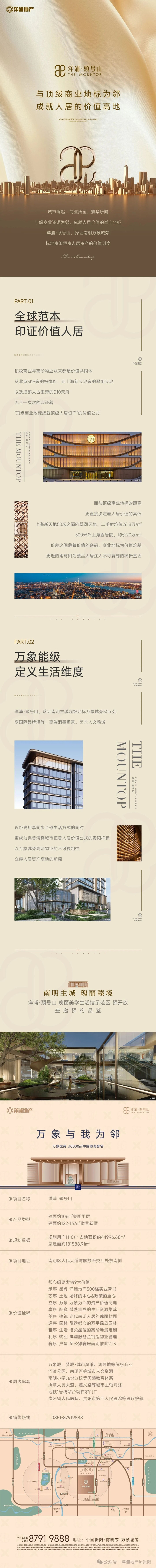 近距离拥享同步全球生活方式的同时,更成为完美演绎城市恒贵人居价值公式的贵阳样板,以万象城旁高阶物业的不可复制性,立序人居资产高地的新篇。