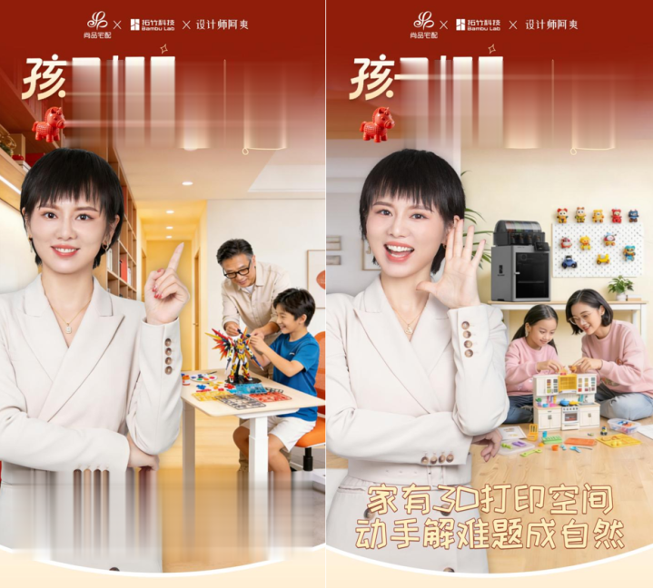 尚品宅配为拓竹科技注入关键增长动能,实现多维度价值赋能:依托全国2000余家门店及千万级家庭服务网络,助力拓竹精准破圈高净值家庭用户,打破传统用户圈层局限;以真实装修场景为载体,为3D打印提供落地验证与数据沉淀支撑,加速技术迭代优化;借亲子体验场景培育下一代用户认知与情感连接,构建长期用户生态;同时依托门店天然信任场景搭建高效品牌教育渠道,降低市场普及成本,并联合拓竹定义家居3D打印行业标准,共同筑牢“技术+场景”双重竞争壁垒。